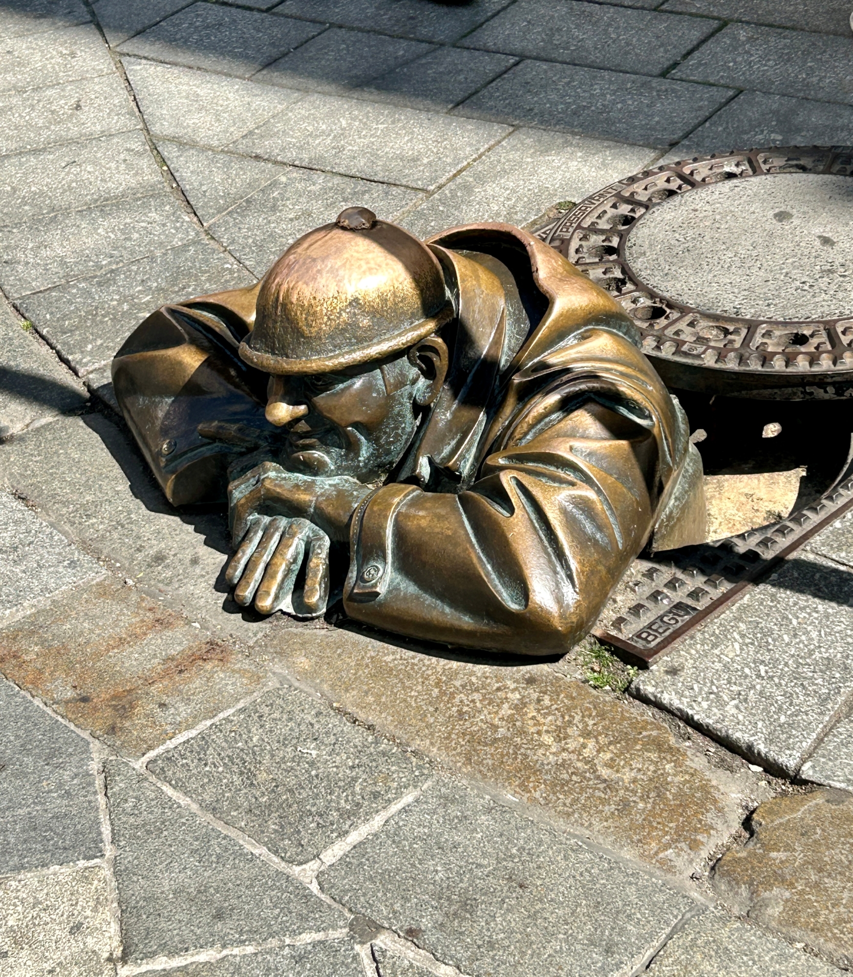 Mitteleuropa ist unerschöpflich. Unser nächster Halt ist Bratislava, die Hauptstadt der Slowakei, eine der kleinsten Hauptstädte Europas mit etwas über 500.000 Einwohnern. Gleich beim Betreten der Altstadt aus dem 18. Jahrhundert fällt ein ungewöhnlicher Anblick ins Auge: Bronzestatuen, die historische Persönlichkeiten darstellen – allesamt perfekte Fotomotive für Instagram. Vor einigen bilden sich sogar Warteschlangen, wie zum Beispiel vor Cumil, dem Soldaten, der aus der Kanalisation kommt, oder Schöne Naci, dem lächelnden Mann!