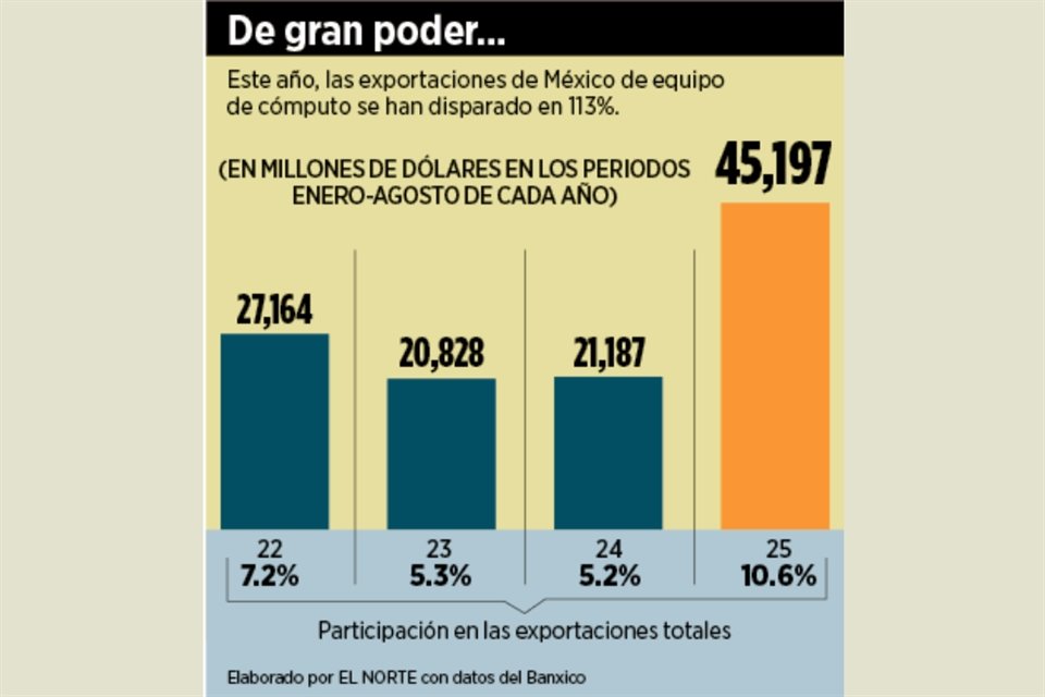 Tariffs have led to a drop in Mexico's light vehicle exports to the US, which this year were already surpassed by computer equipment, and it is precisely this sector that could lead to a second wave of nearshoring, predicted Gabriella Siller, director of analysis at Banco Base.