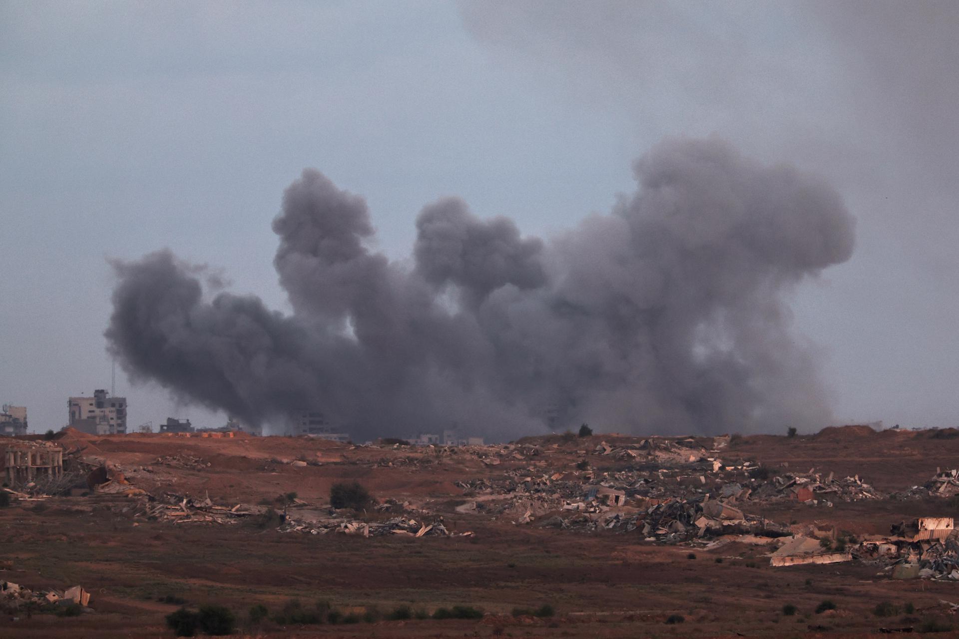 Dym unosi się po izraelskim ataku na obrzeża miasta Gaza. Zdjęcie: EFE
